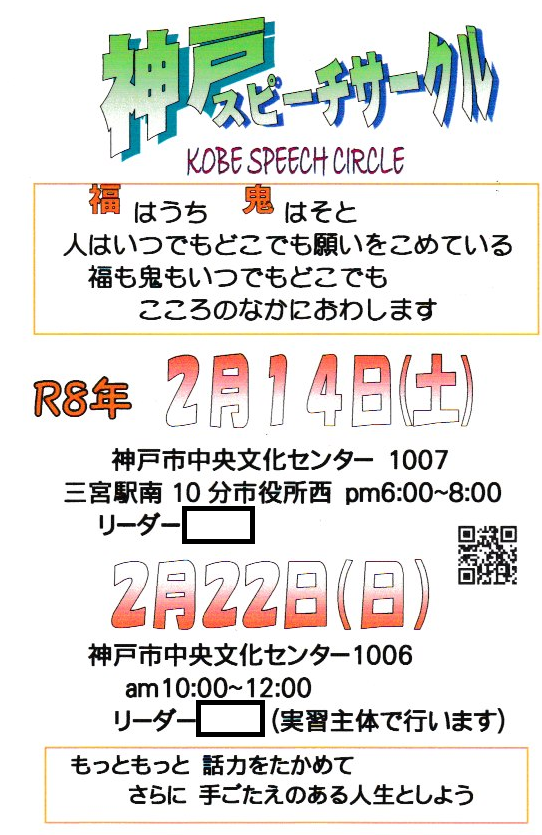 4月11日(土) 三宮駅南側 神戸市中央区文化センター 会議室1006 18時~
